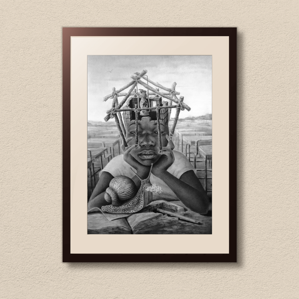 Original print of graphite and charcoal on handcrafted natural cotton.