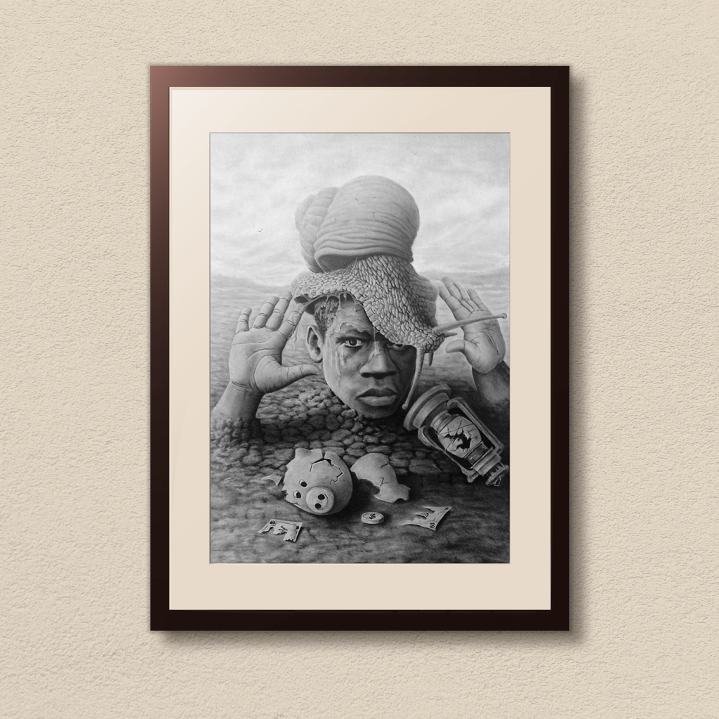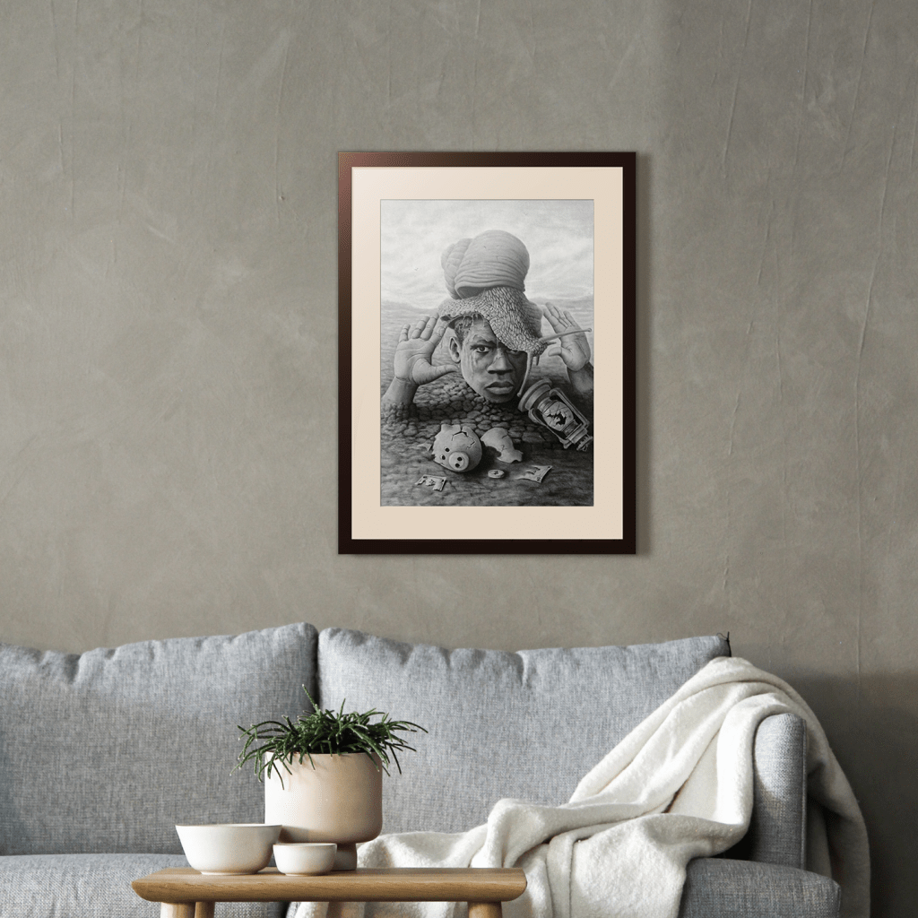 Original print of graphite and charcoal on handcrafted natural cotton.