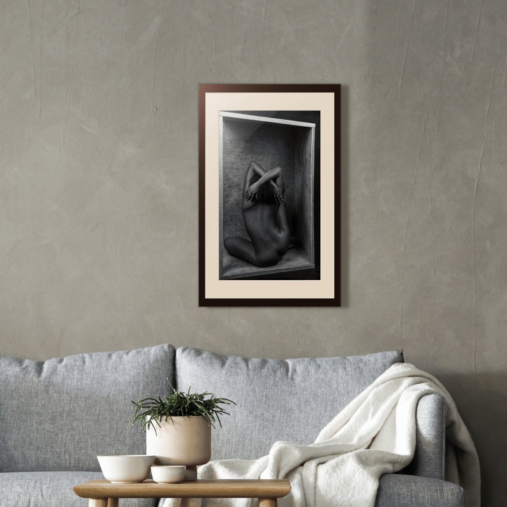 Secured by museum glass and conserved in our 14 x 27″ frame.
